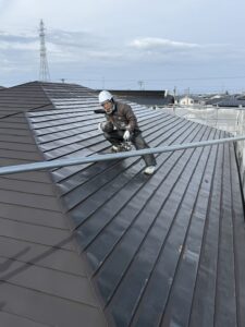 ケレン作業の後は、屋根の下塗り塗装を行いました。
